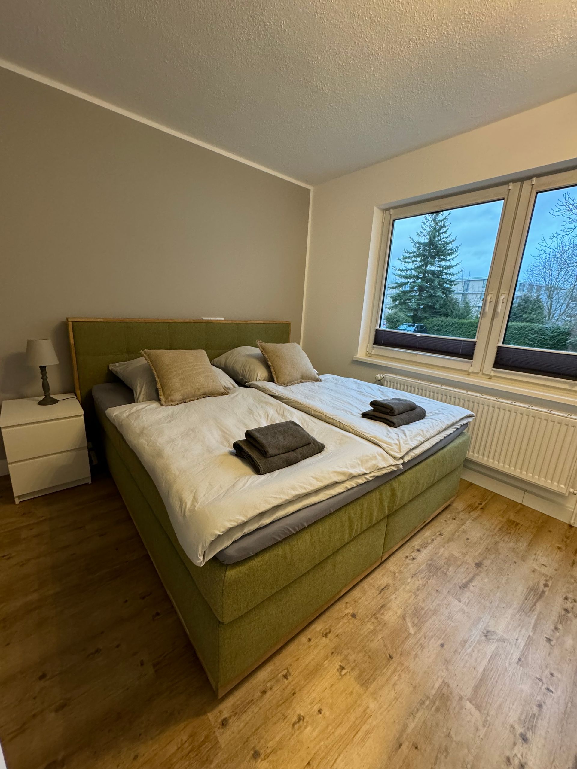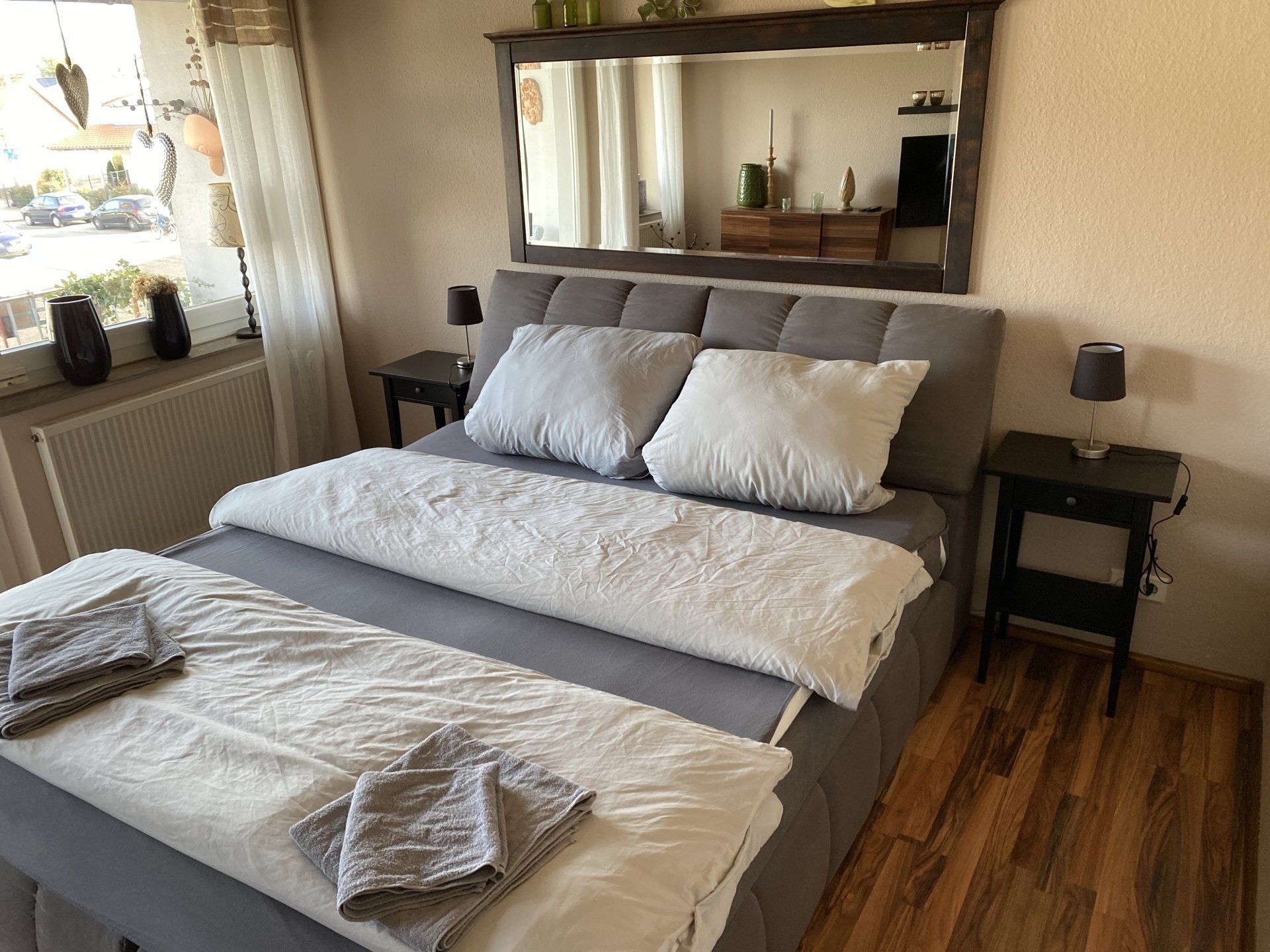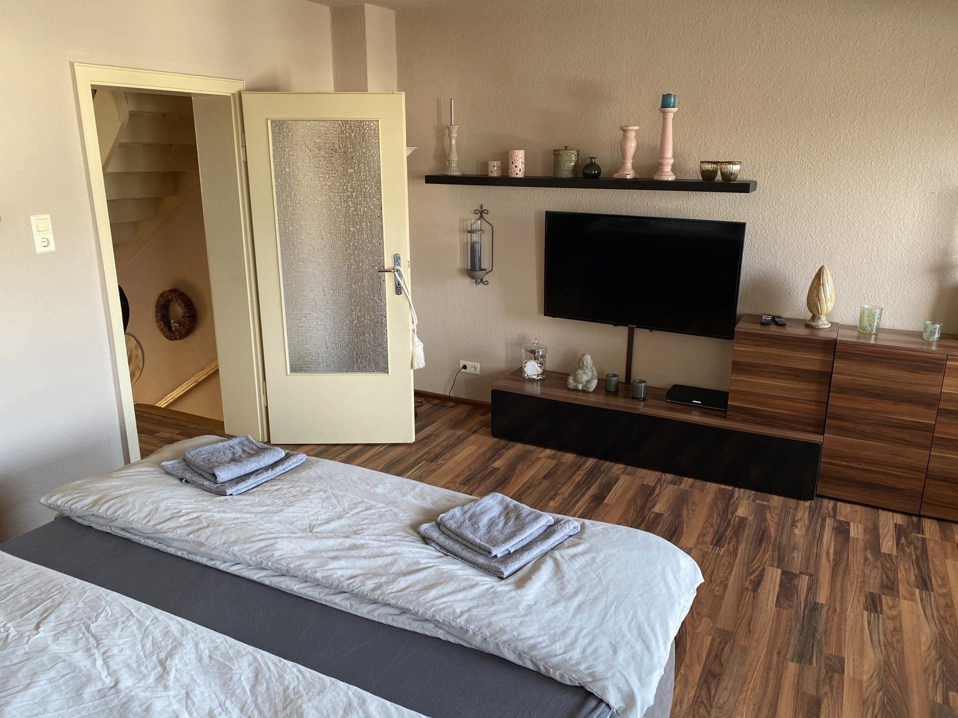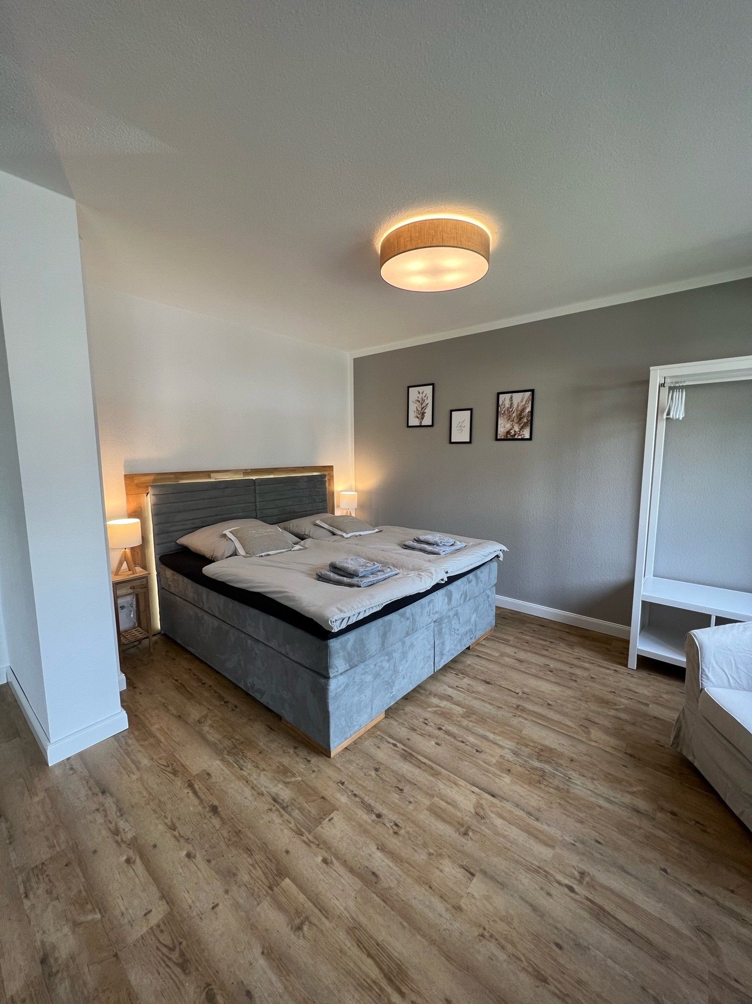 im Appartement N°1 im EG erwartet Sie auf 75m² viel Platz für bis zu 4 Personen. Neben einer Wohnküche, Balkon und Schlafzimmer mit Boxspringbett und TV erwartet Sie ein überaus geräumiges Wohnzimmer mit zusätzlichem Boxspringbett.