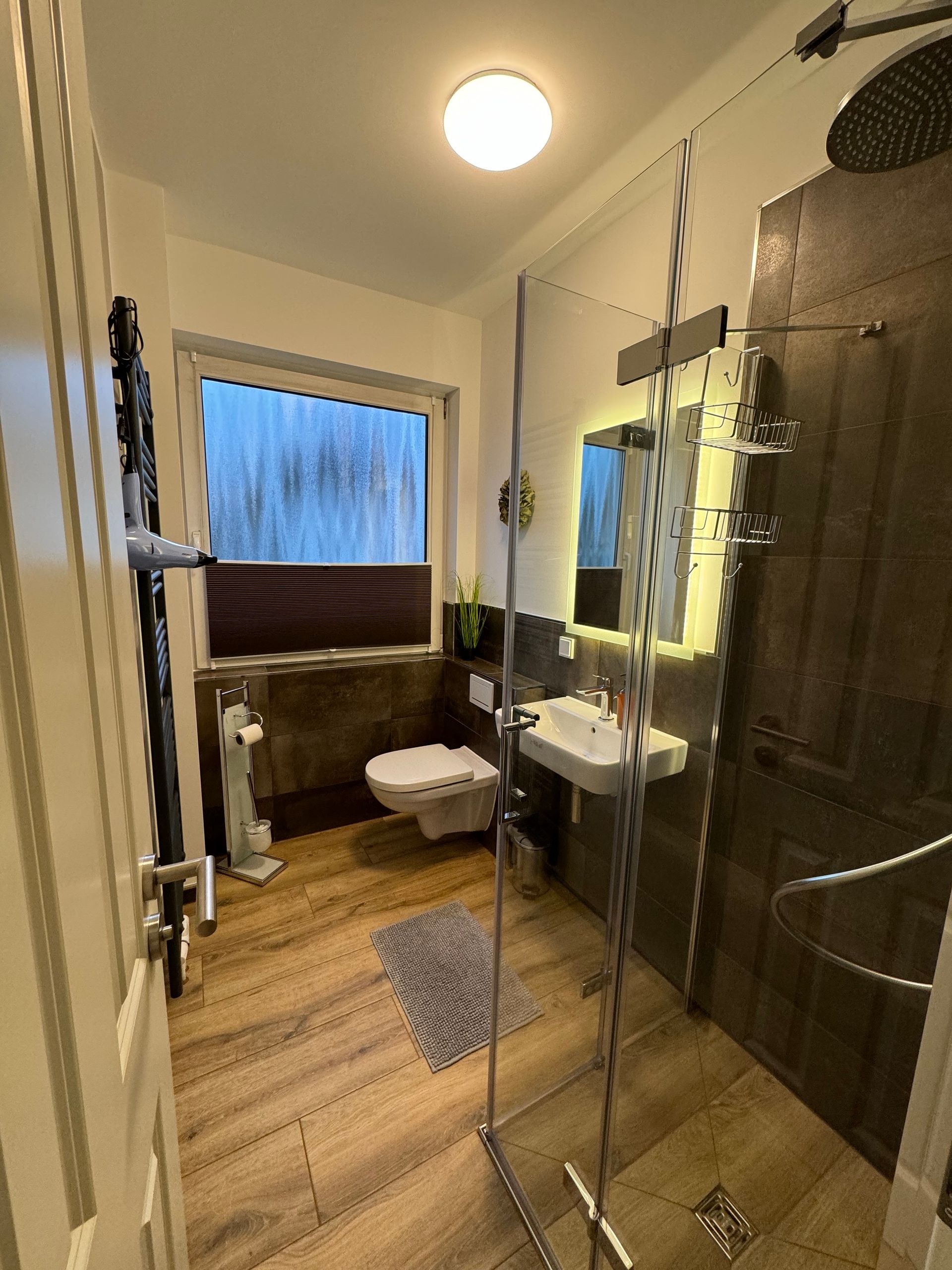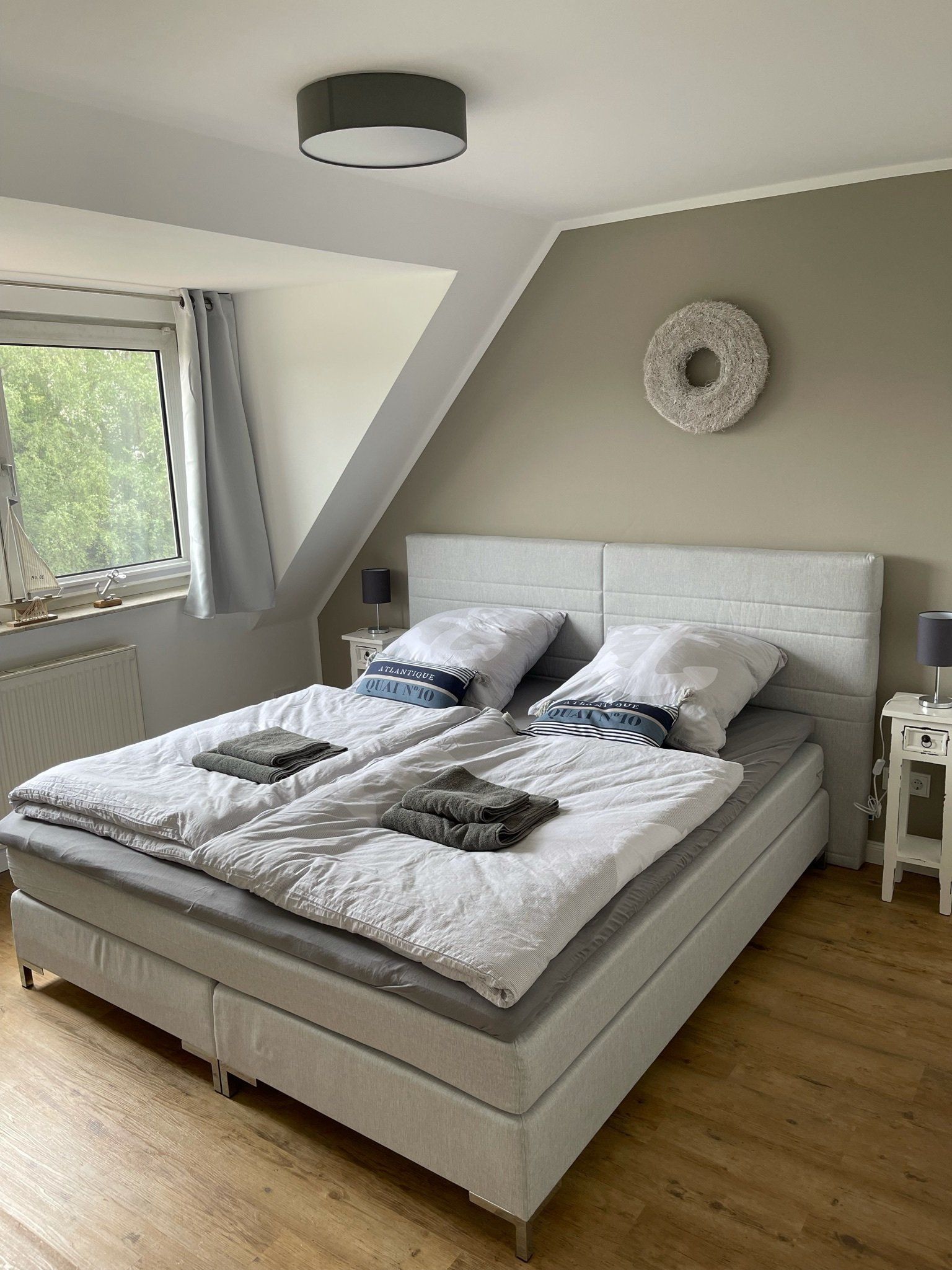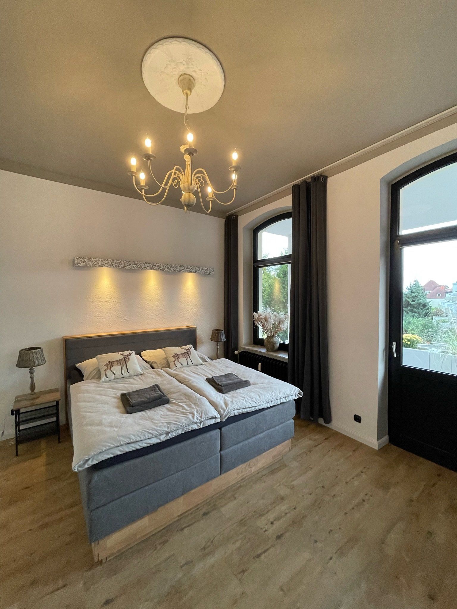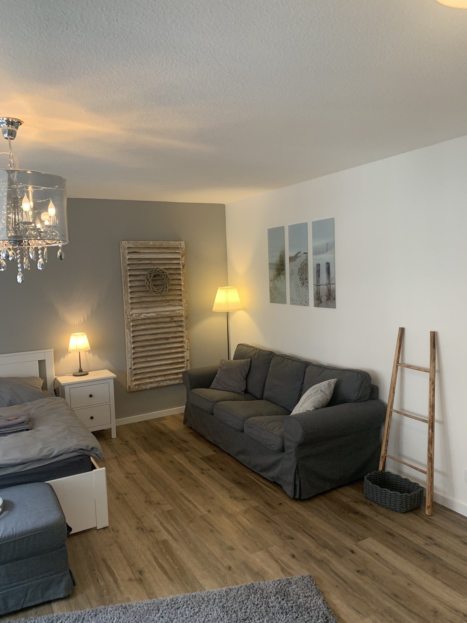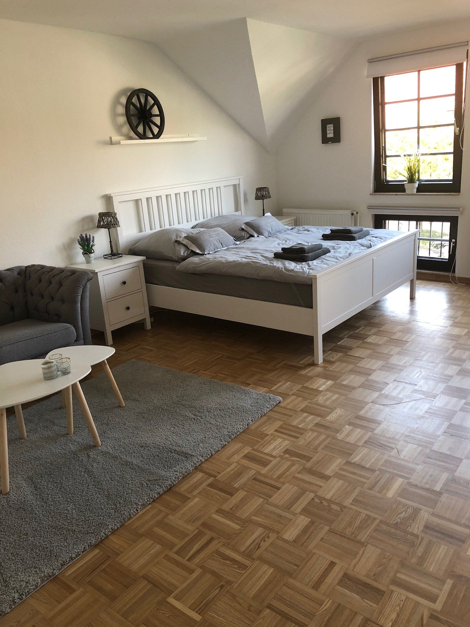 im Appartement N°1 im EG erwartet Sie auf 75m² viel Platz für bis zu 4 Personen. Neben einer Wohnküche, Balkon und Schlafzimmer mit Boxspringbett und TV erwartet Sie ein überaus geräumiges Wohnzimmer mit zusätzlichem Boxspringbett.