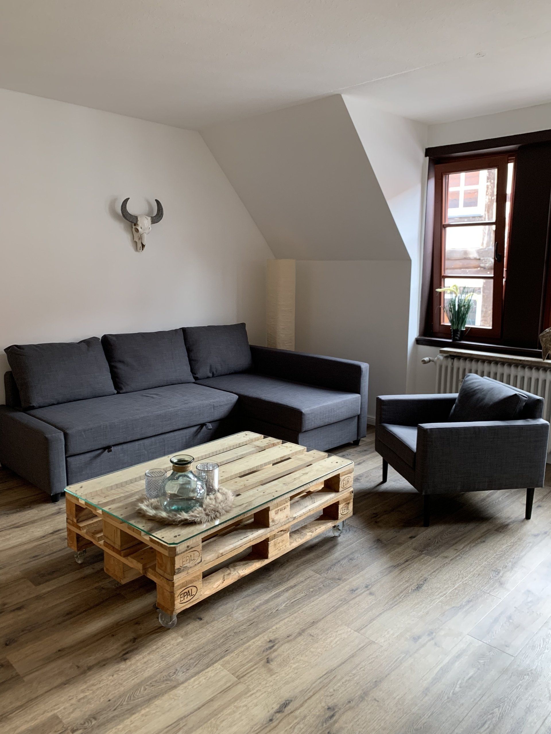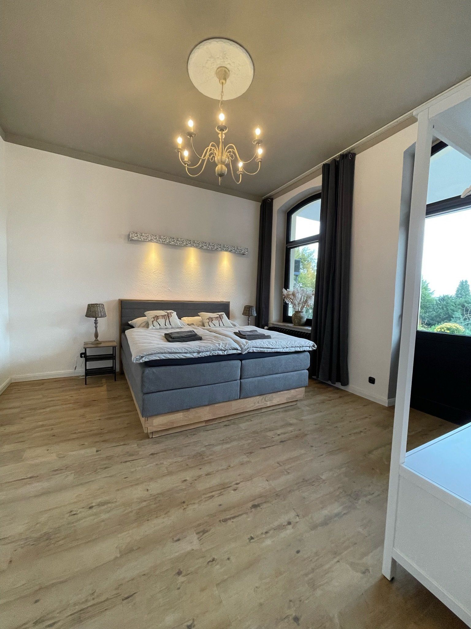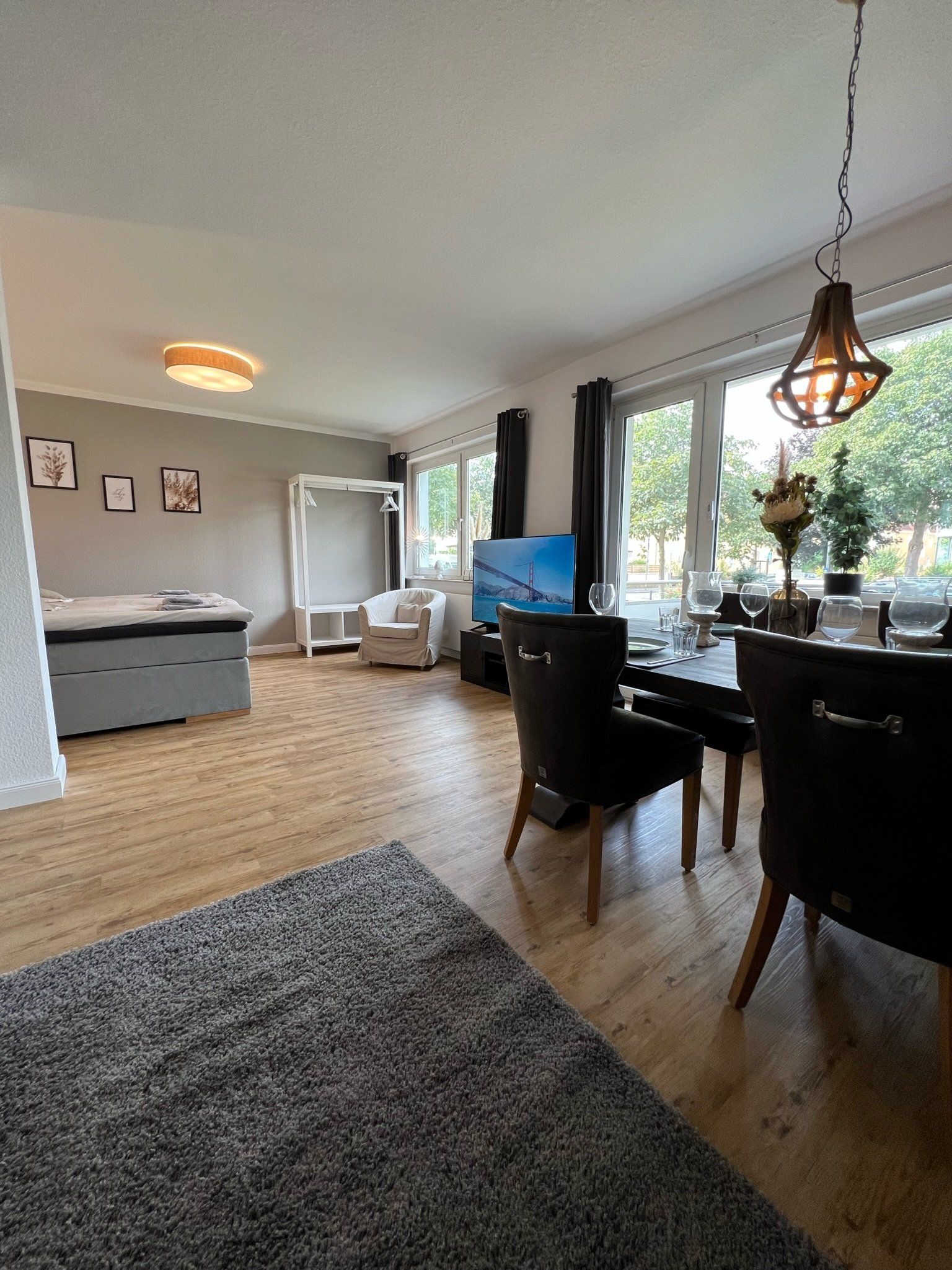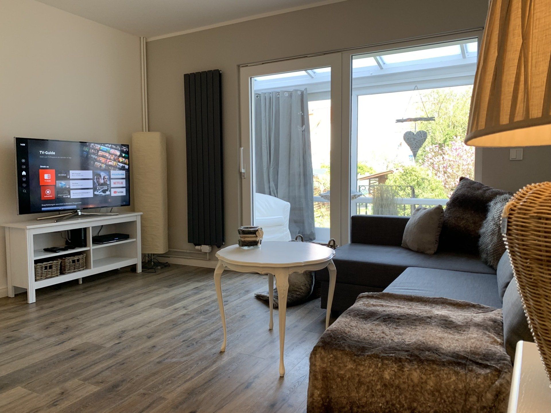 im Appartement N°1 im EG erwartet Sie auf 75m² viel Platz für bis zu 4 Personen. Neben einer Wohnküche, Balkon und Schlafzimmer mit Boxspringbett und TV erwartet Sie ein überaus geräumiges Wohnzimmer mit zusätzlichem Boxspringbett.